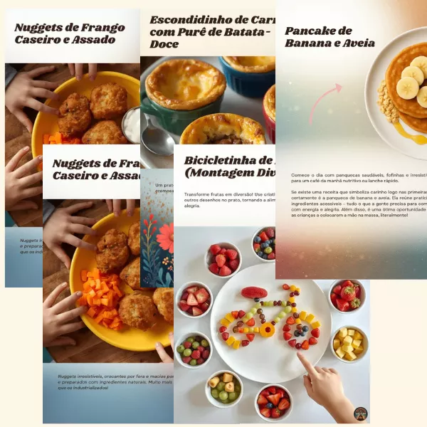 Pais, mães e cuidadores que querem mais opções de refeições e lanches para crianças até 10 anos, com praticidade e foco na rotina real.